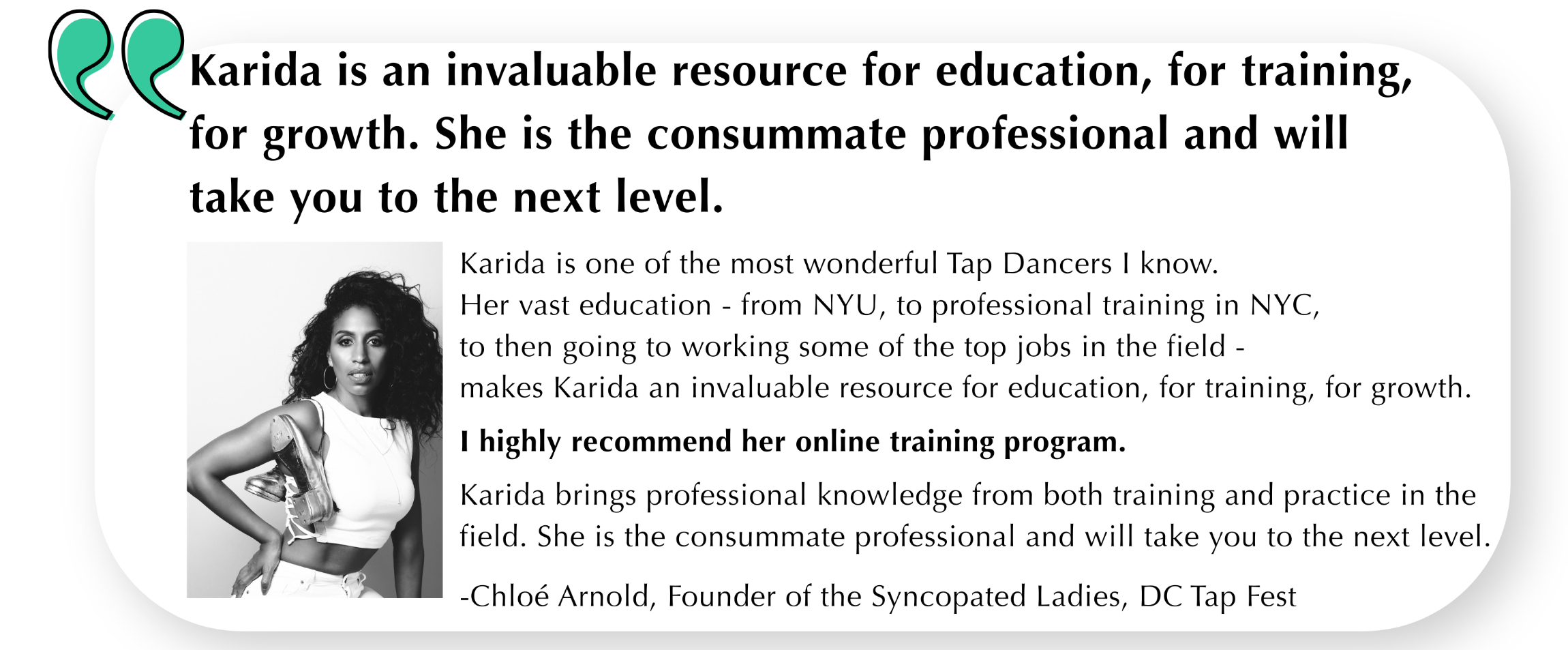 Hi, I'm Karida - Radio City Rockette, Professional Tap Dancer & Educator.